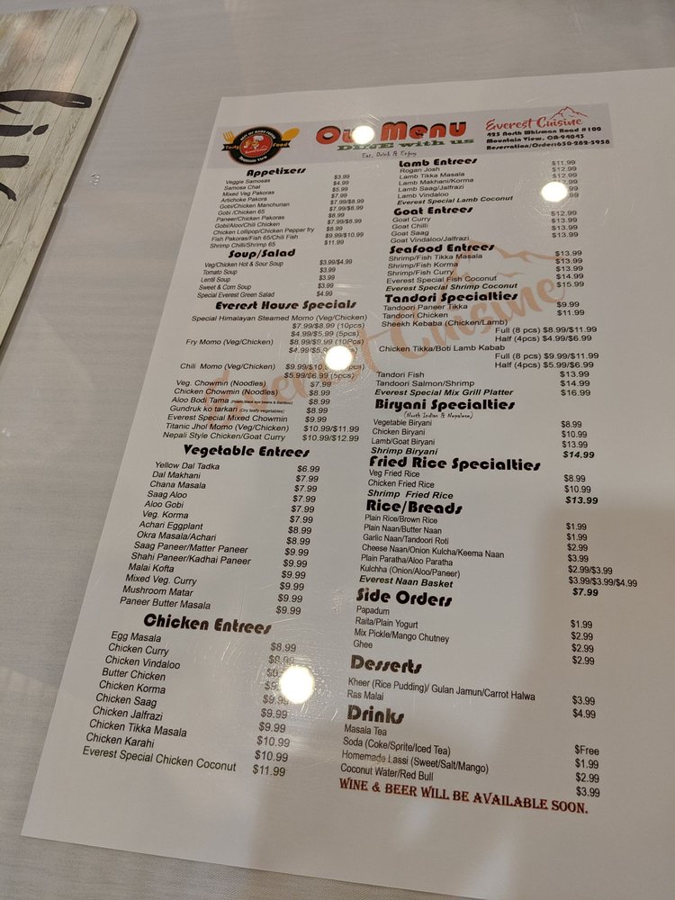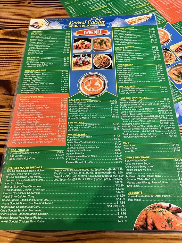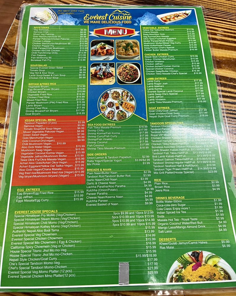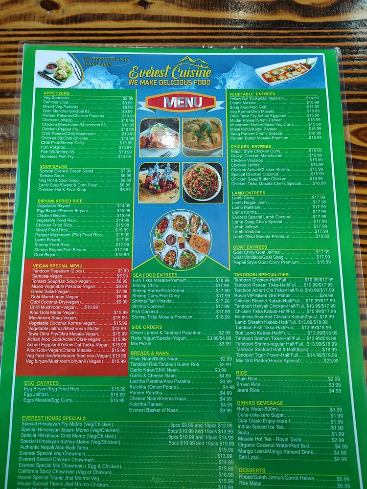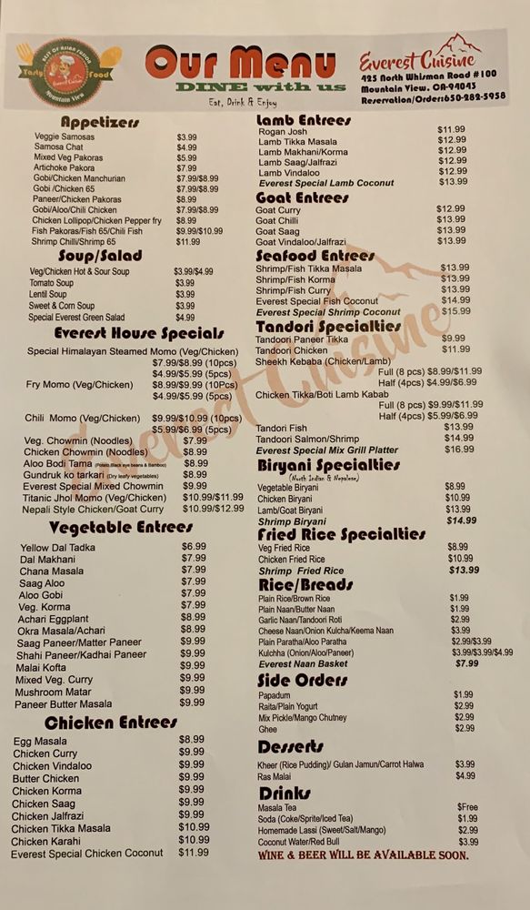 Everest Cuisine-Mountain View Menu (2025 Update)